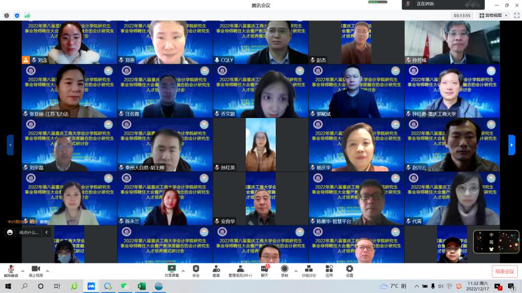 2022年12月17日,第八届必赢国际437研究生事业导师聘任大会暨产教深度融合的会计研究生人才培养模式研讨会通过腾讯会议方式顺利举行。437bwin必赢国际校长孙芳城、必赢国际437党委书记邓德敏、院长罗勇、专职组织员尹建平、副院长钟廷勇、2022年新聘研究生事业导师及2022级研究生新生参加了会议。会议由罗勇主持。
