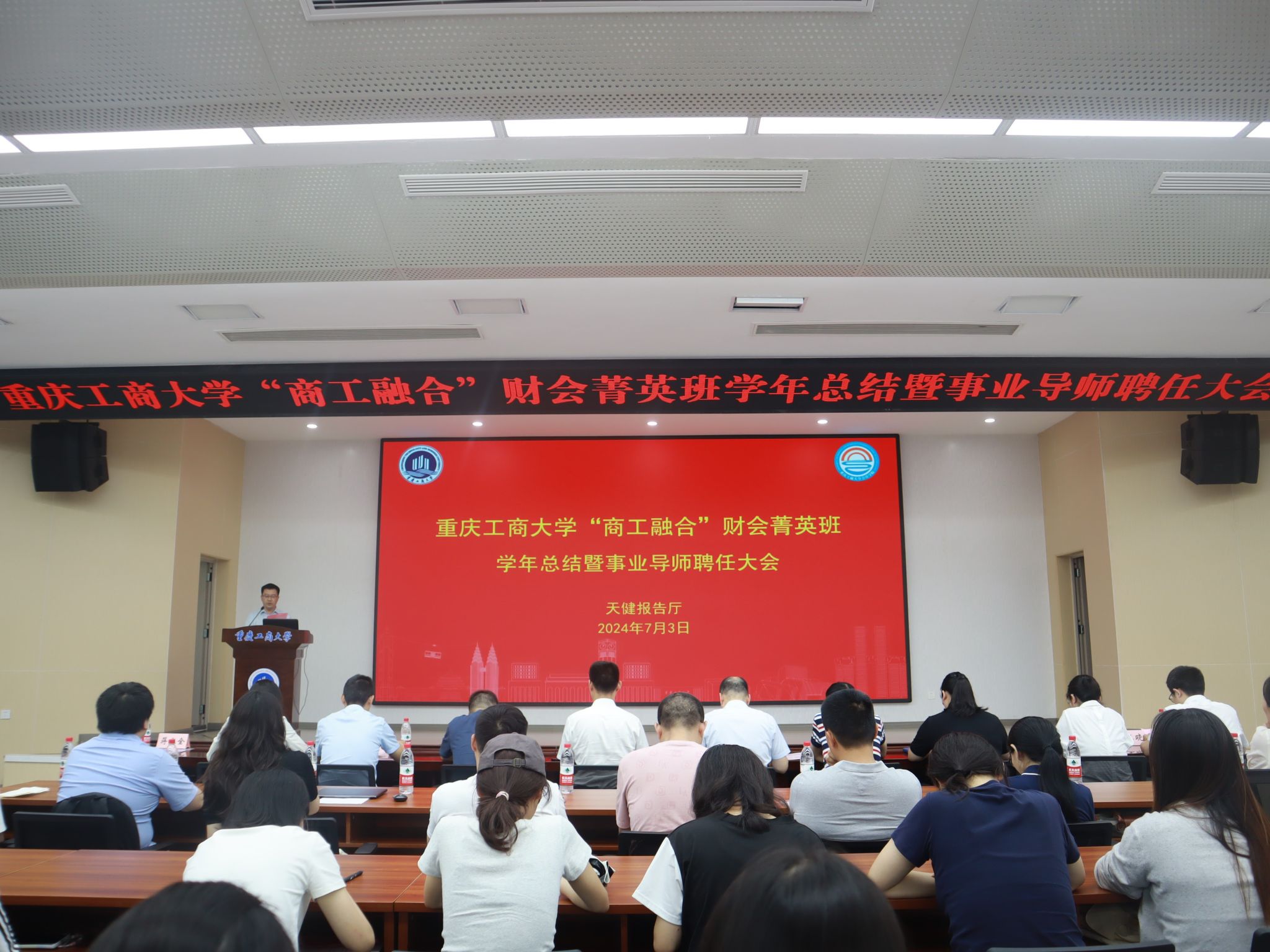 2024年7月3日,437bwin必赢国际“商工融合”财会菁英班学年总结暨事业导师聘任大会在天健报告厅成功召开。教务处副处长黄潇,必赢国际437全体班子成员,财会菁英班学业导师代表、事业导师代表、班导师、班主任和22级全体同学参加了大会。大会由必赢国际437副院长蒋水全主持。