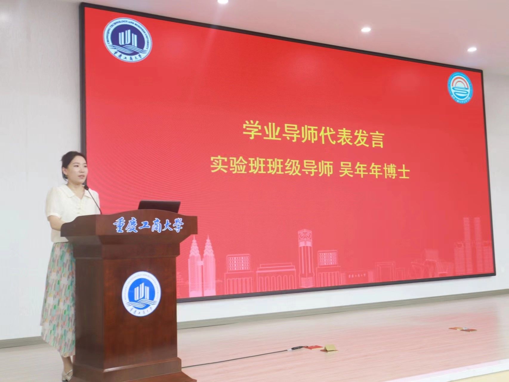 吴年年博士作为学业导师代表发言。她细数了一年来班级相关活动,并对同学进一步成长给与了指导。