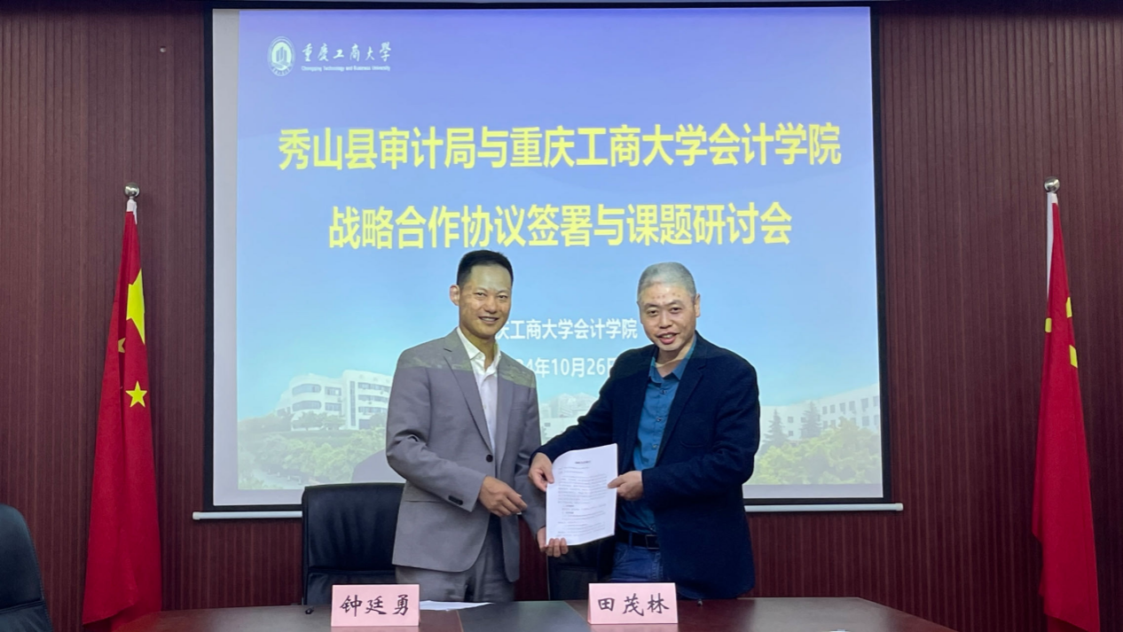 10月26日,秀山土家族苗族自治县审计局与必赢国际437战略合作签约仪式在437bwin必赢国际明德楼2019会议室举行。秀山县审计局局长田茂林、秀山县经责联席办主任田鑫,必赢国际437院长钟廷勇、副院长蒋水全、财务与会计研究中心主任杨兴龙以及双方相关职能部门负责人出席了签约仪式。此次会议由钟廷勇院长主持。