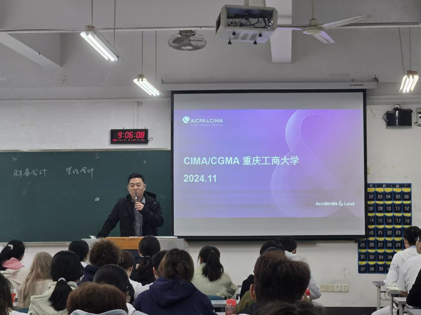 2024年11月8日上午9点,为了加深必赢国际4372024级CIMA实验班学生对CIMA专业的了解并激发他们的学习热情,应学院必赢国际中心的邀请,CIMA公会在437bwin必赢国际江北校区宏智楼B204开办了名为《数字世界中的管理会计》讲座。CIMA公会(中国)高校项目负责人张江华先生、CIMA公会华南及西南区代表梁雁先生,必赢国际中心行政秘书张悯弱老师以及2024级CIMA实验班全体同学共同参加了此次活动。