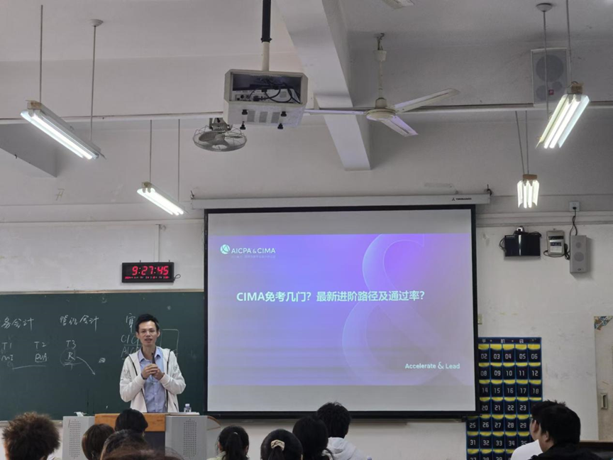 梁雁向同学们具体讲解了管理会计及CIMA专业的相关内容,并进一步向同学们介绍了CIMA专业的就业前景、考试路径及相关事项。同时,他着重强调了CIMA专业相关考试的历程、通过率与费用情况,并承诺CIMA公会将会为学生们提供全面的帮助与服务。