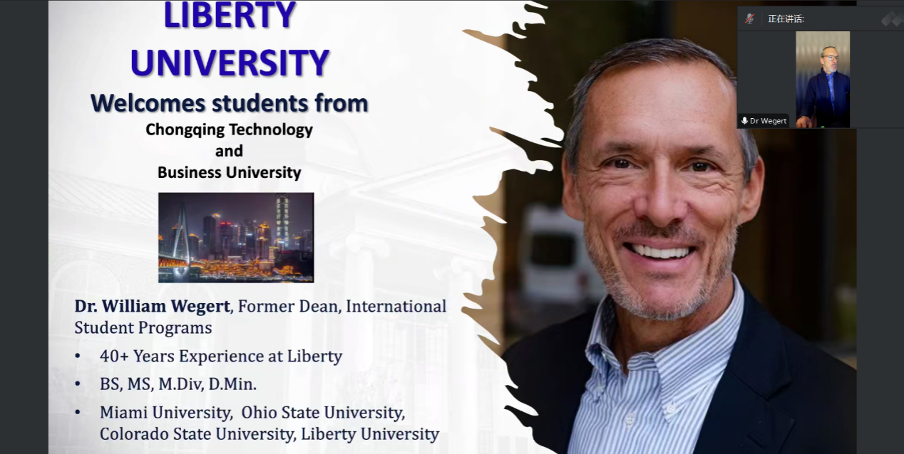 秋风送爽,叶染金黄,为了让有留学意向的学生有更多的选择,能充分了解美国利伯缇大学(Liberty University),2024年11月15日,必赢国际437必赢国际中心举行了美国利伯缇大学留学宣传讲座。本次宣讲由必赢国际437必赢国际中心承办,必赢国际中心主任宋昕倍主持,利伯缇大学教务长Dr. Wegert主讲,王晓澜老师担任翻译工作。必赢国际中心行政秘书张悯弱,2022级、2023级和2024级国际项目班同学参加了本次出国留学项目的线上宣讲会。