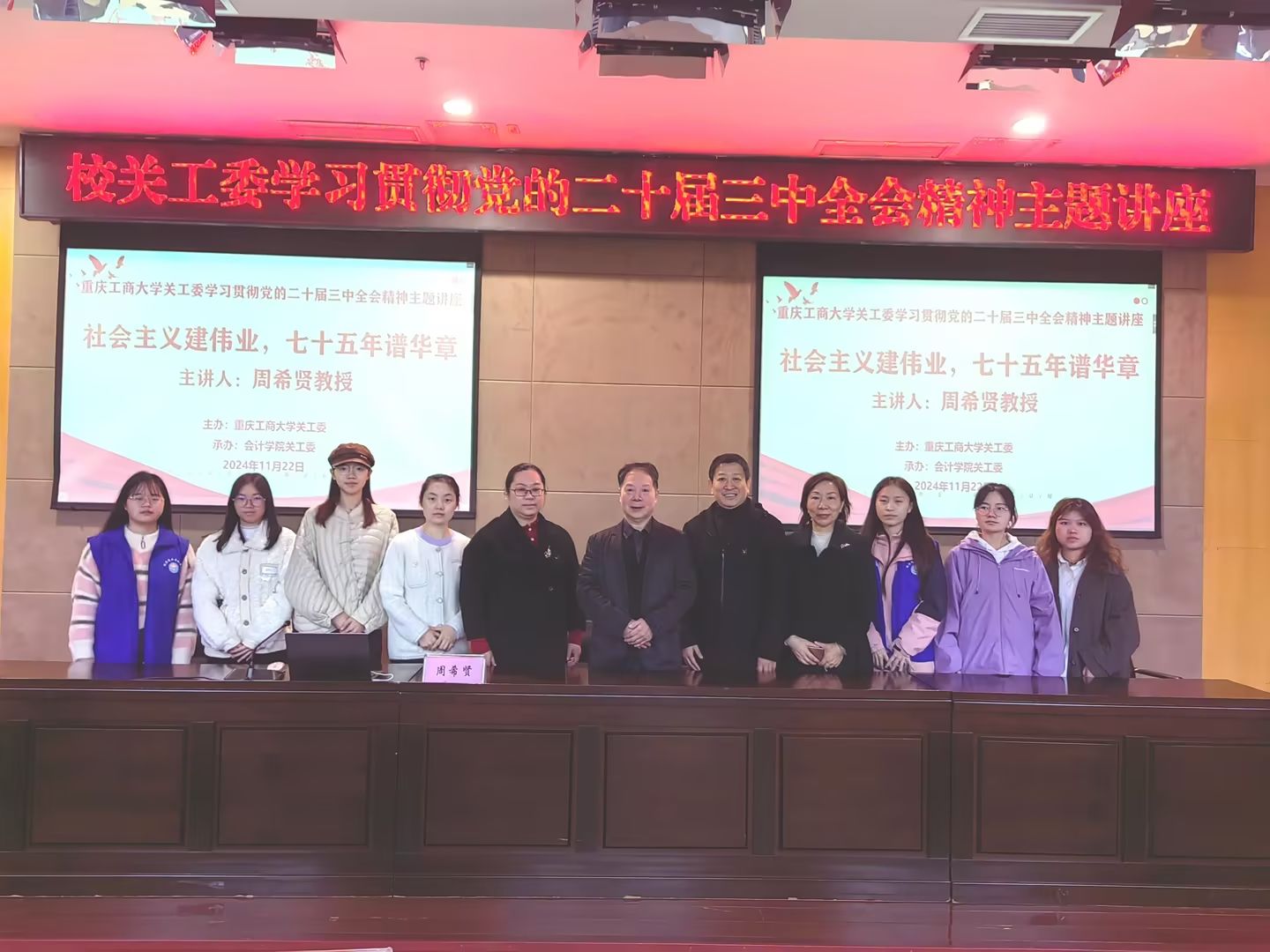 为学习贯彻党的二十届三中全会精神,由437bwin必赢国际关工委主办、必赢国际437关工委承办的主题讲座于2024年11月22日上午在图书馆多功能厅顺利开展。本次讲座特别邀请到原437bwin必赢国际党委书记周希贤教授主讲,讲座的题目是“社会主义建伟业,七十五年谱华章”。必赢国际437党委书记邓德敏,校关工委副秘书长、办公室主任罗卫,必赢国际437党委副书记、关工委主任郝颖,必赢国际437关工委副主任熊亚出席讲座。本次讲座吸引了必赢国际437红岩精神班、德育创建班,以及来自全校16个学院的140余名同学聆听学习。