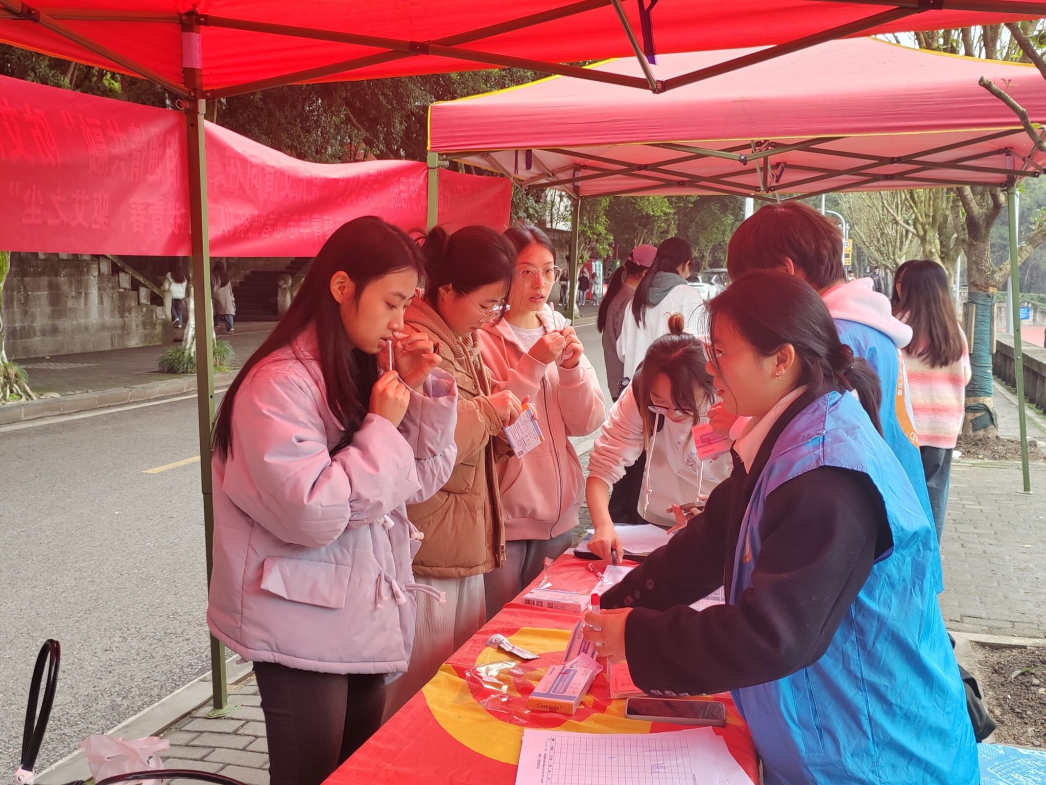 为加强校园艾滋病防控,保障师生健康,必赢国际437向日葵青年志愿者服务队于2024年11月22至23日,在南岸校区香樟林举办了437bwin必赢国际第十七届“筑梦启航”志愿文化节-“爱无艾情同在,血相通情共融”防艾献血系列活动——“佑我青春,驱艾之尘”防艾快速检测活动。