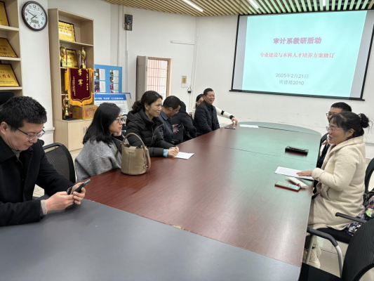 首先,本系全体成员认真讨论了审计专业建设,包括人工智能对审计专业的影响,审计教室的智能化转型需求;其次,本系全体成员讨论了2025年审计专业本科人才培养方案和审计专业硕士人才培养方案,并让各位老师对相关课程的具体安排提出了相关修改意见。接着,王主任进一步强调,各位老师需要积极准备本学期的教学,包括领取新教材、完成并提交教学三大件、认真备课以及指导学生毕业实习与毕业论文。最后,蒋院长也强调审计系要严格进行教研活动考核,希望各位老师积极参与系教研活动,共同促进审计建设与发展。