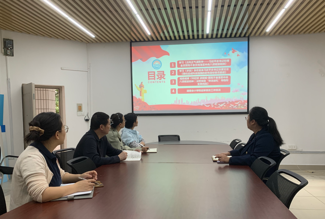 与会人员集中观看了视频《守纪律讲规矩•锲而不舍落实中央八项规定精神丨深挖彻查“快递送礼”等隐形变异问题》。会上,郝书记通报了学院巡察整改工作情况,督促学院党委有目标、分步骤、按进度开展整改,最迟5月底完成所有巡察整改工作。