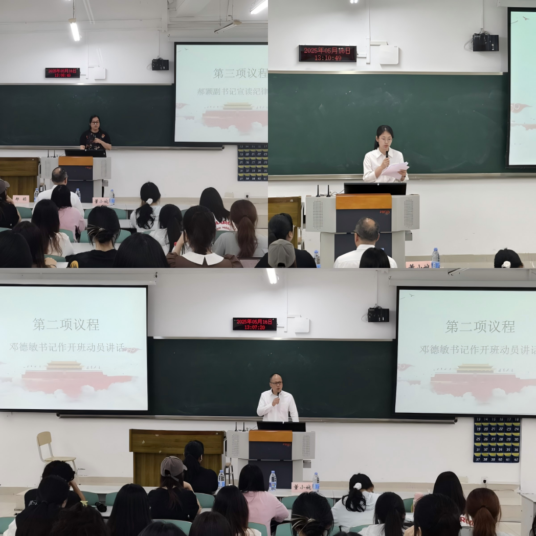5月16日至17日,培训班开展了为期两天的集中授课,围绕党的历史、理论与使命展开五场专题教学:邓德敏书记以《学习贯彻党的二十届三中全会精神——新时代中国青年成长成才的光辉指引》为题,激励学员厚植爱国爱党情怀,树立远大理想,勇担时代责任。马克思主义学院陈松教授带来《中国共产党百年奋斗的光辉历程和历史经验》,以宏阔的历史视野展现党的百年奋斗画卷,深刻诠释党在惊涛骇浪中铸就的伟大奋斗精神。学生三支部书记陈曦以《狱中八条:百年党史的红色警钟与新时代青年党员的使命档案》为主题,通过鲜活的革命事例,引导学员深刻领悟“如何成为合格共产党员”。学生一支部书记罗海蓉讲授《正确认识和了解中国共产党》,系统解读党的性质、宗旨、初心使命、纪律要求及现阶段任务,帮助学员明晰国家发展总体布局与战略方针。马克思主义学院胥炜老师的《习近平新时代中国特色社会主义思想》专题课,全面阐述这一思想的创立背景与核心内容,指导学员掌握学好用好党的创新理论的方法论。学生功能型党支部书记董小婉主讲《中国共产党的基本理论、基本路线和基本方略》,通过深入浅出的讲解,推动学员对党的理论体系形成全面深入的认知。除集中授课外,培训班同步开展分散自学环节,学员们结合自身感悟撰写学习心得,在理论学习与自我反思中深化对党的认识。
