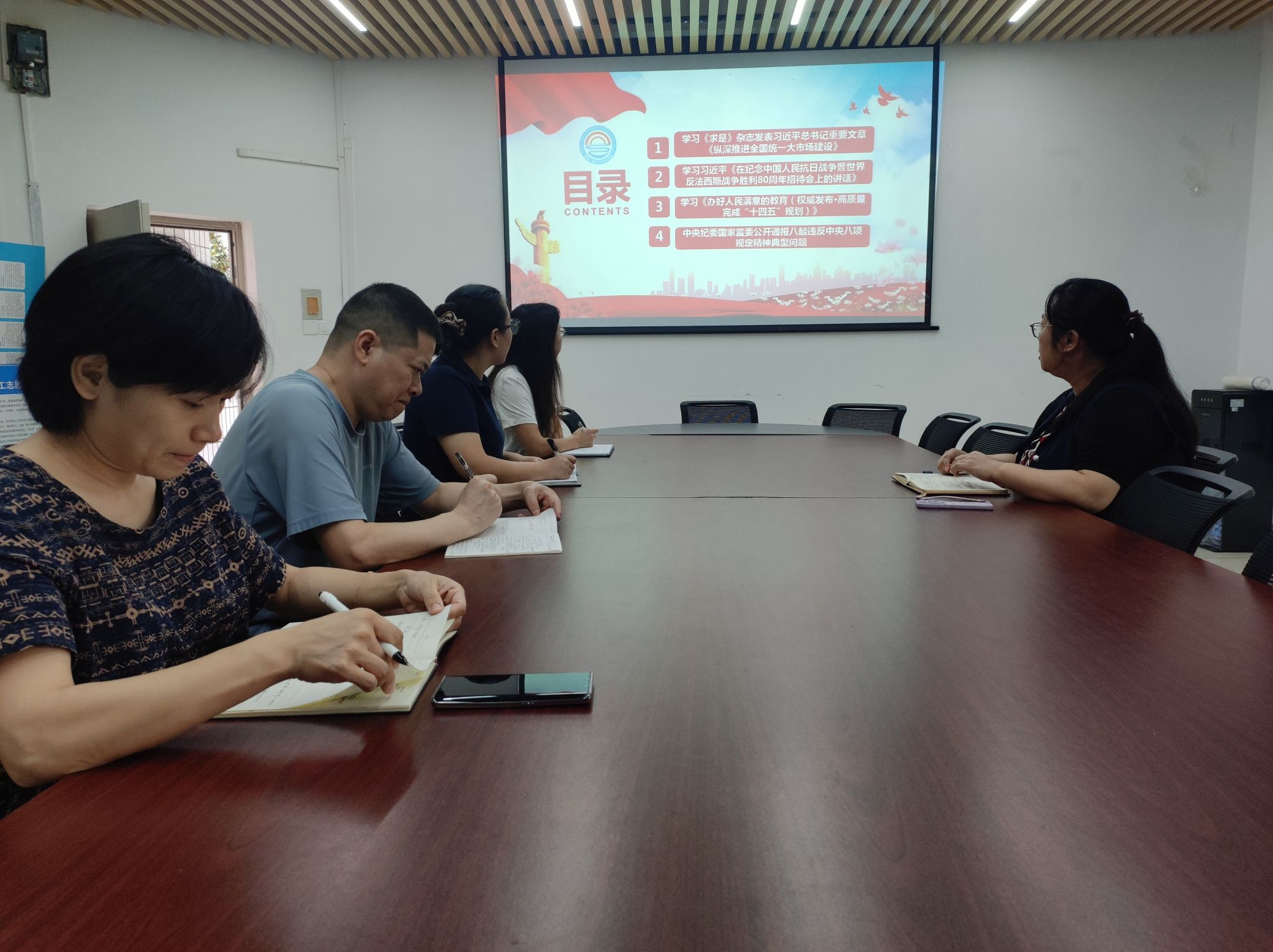 最后,与会人员学习讨论了中央纪委国家监委公开通报的八起违反中央八项规定精神典型问题,并就学习内容分享心得体会。李长艳表示9.3阅兵展示出来的强大实力增强了我们的信心,提升了我们的底气。文秋萍结合近期社会热点事件,提出高校需警惕意识形态领域的渗透,加强对学生的教育引导。石恒贵对社会热点新闻展开分析,认为全国统一大市场有利于调动内需,纵深推进全国统一大市场建设很有必要。兰宗认为全国统一大市场建设覆盖范围广,希望法制税制等基础制度建设更加完善。