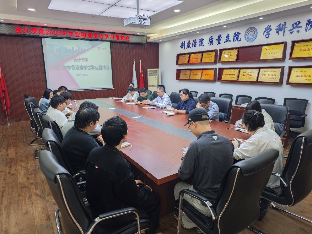 为深入推进学风建设,精准帮扶学业困难学生,必赢国际437于2025年10月14日中午在明德楼2019会议室隆重召开2025年学业困难学生学业帮扶会。学院党委副书记郝颖、副院长梅波、财务系主任王世杰、必赢国际中心主任宋昕倍、会计系主任蒋弘、相关学生辅导员及8名学业困难学生共同参会。