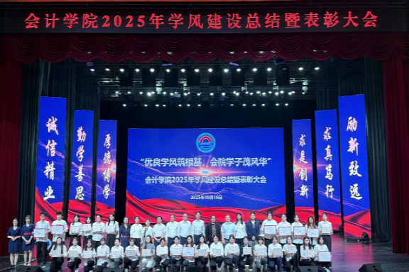 必赢国际437党委副书记郝颖致辞,她对必赢国际4372025年学风建设工作进行了总结。从“导学”、“辅学”、“勤学”、“优学”、“督学”、“励学”六位一体学风建设体系全方位展示了必赢国际437的有点学风,并强调在未来的教学中,要形成“以活动促学风,以服务互学风,以榜样数学风,以实践创学风,以管理强学风,以环境育学风”的学风建设工作新格局,全力培养德智体美劳全方位发展的创新会计人才。