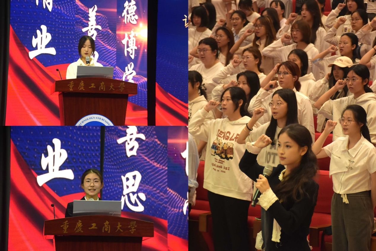 随后,全体起立,由2025级会计一班向玉洁同学作为领誓人,带领全体同学进行学风建设宣誓仪式。忠忠誓言,回荡在每位同学的心中。