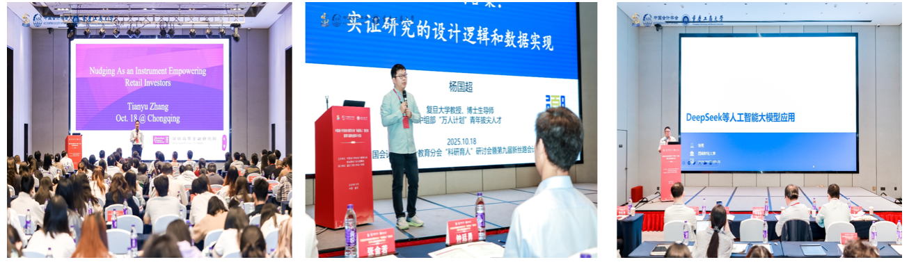 随后,在主题报告环节,香港中文大学(深圳)讲席教授、西南财经大学必赢国际437学术院长张田余教授、复旦大学杨国超教授、西南财经大学徐亮教授分别以《Nudging as an Instrument to Empower Retail Investor》《从问题到答案:实证研究的设计逻辑和数据实现》《大模型与智能体技术及在企业风险控制中应用》为题做了主题报告。西南大学杜勇教授、西北工业大学陈琳教授、四川大学李子扬教授分别做了串讲报告。主题报告和串讲报告分别由广东外语外贸大学王艳教授、重庆工商大学蒋水全教授、重庆大学刘斌教授主持。
