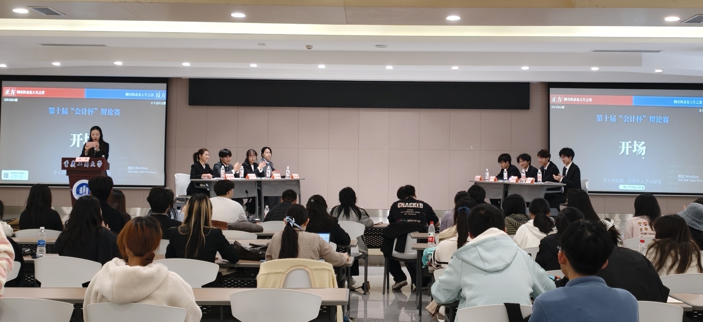 经过多轮激烈比拼,25CIMA班、25会计5班、25审计1班一队与25财务1班脱颖而出,成功晋级决赛。决赛现场座无虚席,气氛热烈到顶点。25CIMA班与25会计5班的巅峰对决围绕极具思辨价值的辩题展开,各环节亮点纷呈、扣人心弦。自由辩论环节更是将赛事推向高潮,辩手们引经据典与现实案例相结合,攻防转换自如,赢得全场阵阵喝彩。最终,25CIMA班凭借默契的团队配合、严密的逻辑架构和灵活的临场应变摘得桂冠,25会计5班以精准的反驳和生动的案例憾居亚军,25审计1班一队与25财务1班并列季军。