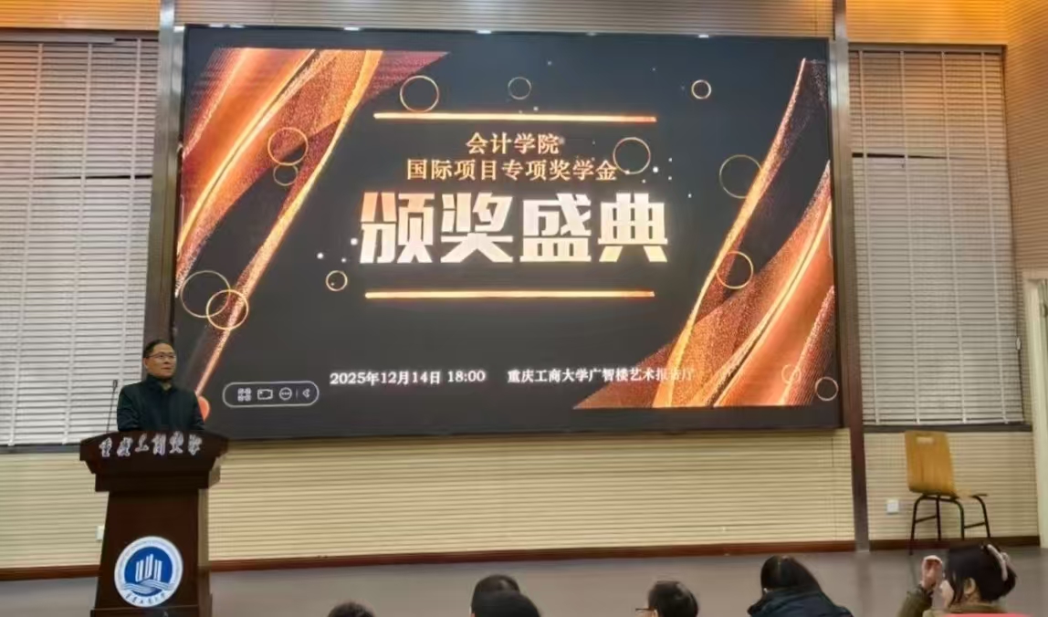 接着,到场领导对国际项目学业表现突出、综合素养优异的同学予以表彰,并颁发国际项目全球统考科目第一名、全国大学生英语四六级考试奖学金、以及ACCA全科通过及CIMA通过管理级等奖项。表彰环节既彰显了学院对优秀学子的认可与激励,也营造了崇尚学业、争先创优的良好氛围,进一步激发了在场同学勤学善思、锐意进取的学习热情。