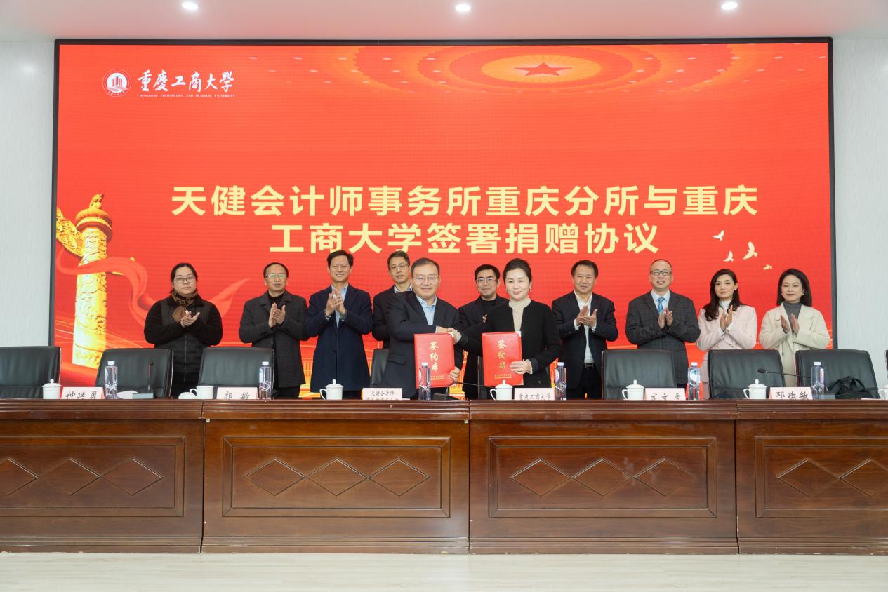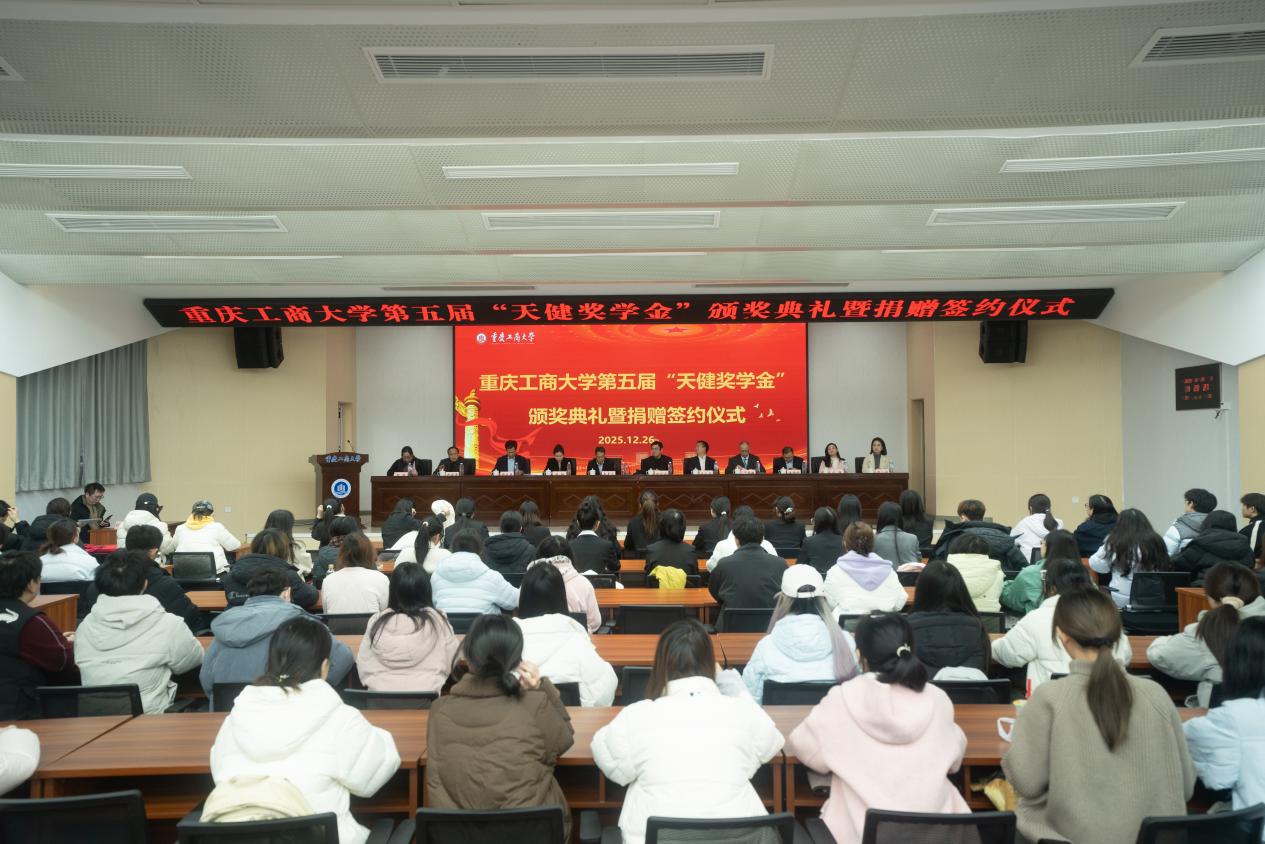 2025年12月26日下午,437bwin必赢国际第五届“天健奖学金”颁奖典礼暨捐赠签约仪式在明德楼天健报告厅成功举办。437bwin必赢国际党委常委、副校长田双全,437bwin必赢国际国内合作发展处处长(校友办公室主任)郭敏和必赢国际437班子成员,天健会计师事务所副总裁、天健重庆党委书记龙文虎,天健会计师事务所副总裁、重庆分所总经理李青龙,天健会计师事务所高级合伙人、重庆分所副总经理潘理科,天健会计师事务所重庆分所人力资源总监许静,天健会计师事务所重庆分所人力资源经理廖小娅,获奖学生及师生代表100余人参加了活动。