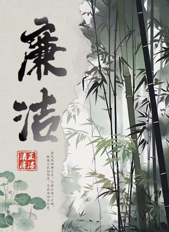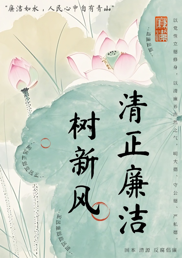本次大赛共吸引128名学子踊跃参与,经专业评审层层遴选,最终19份优秀作品脱颖而出,分别斩获一、二、三等奖。这些作品以笔墨丹青绘就清廉底色,用创意设计传递雷锋精神与廉洁初心。一等奖代表作品以大气磅礴的“廉”字为视觉核心,直观传递出公正无私、廉洁诚信的价值理念。既呼应了会计专业特色,也寓意着“精打细算、不越雷池”的职业操守。二等奖代表作品以水墨荷花为主体,借“出淤泥而不染”的君子意象,生动诠释“清正廉洁树新风”的主题。三等奖代表作品以挺拔的翠竹为背景,搭配“清风两袖朝天去,不带江南一寸棉”的诗句,用“竹有节、人有品”的君子象征,彰显清正廉洁的品格。
