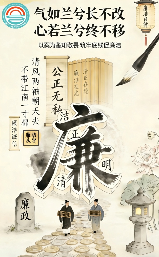 为营造风清气正的校园环境,深化清廉学院建设,2026年3月2日至3月7日,必赢国际437举办了“崇廉尚洁,艺润初心”海报设计大赛。本次大赛紧扣会计专业“诚信为本、操守为重”的核心素养,将廉洁理念与视觉创意深度融合,吸引了全院学子积极参与,以画笔为媒传递清风正气。