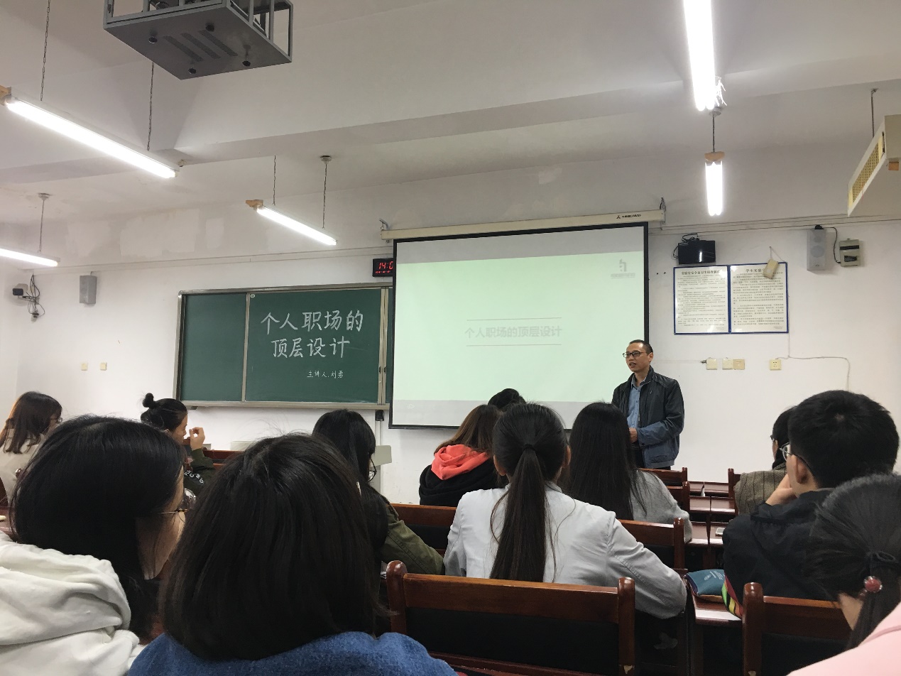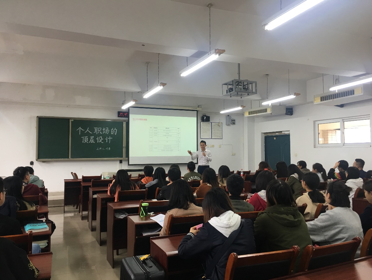 职业生涯规划是指按人生发展各阶段的不同而自行设计的、适合自己各阶段发展的、带有个性化色彩的个人职业生涯的一种中长期发展计划,也是一个持续并根据实际情况不断动态调整职业生涯规划,这对个人的发展是至关重要的。鉴于此,为更好地促进同学的发展,重庆德铭品牌管理公司总经理刘勇老师于2018年10月12日下午14时在博智楼07605教室举行了《个人职场顶层设计》专题讲座,2016级和勤实验班全体同学参加了此次讲座。
