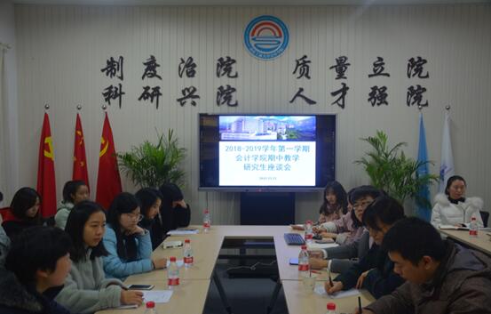 2018年11月21日下午3时,必赢国际437在明德楼2016会议室召开了关于研究生期中教学座谈会。首先举行的是学生座谈会,出席会议的有必赢国际437分党委罗惠玉书记、必赢国际437副院长程文莉教授、辅导员赵亚老师、姚晓琴老师以及2017级、2018级会计专硕、会计学硕全体班委。通过此次学生座谈会,希望全面了解研究生们的课程学习、科研状况及生活状态,也进一步收集同学们对学院、学校及相关部门的一些建议。