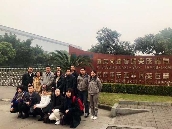 2018年12月19日,我校MPAcc案例大赛参赛队伍“开云节流”队的六名会计专业硕士研究生(李琳、龚秋月、李欣、蒋非彤、陈羽丰、伍林)在必赢国际437副院长程文莉教授和比赛指导老师薛正宽老师的带领下,走进了重庆南瑞博瑞变压器有限公司开展为期一天的实地调研工作。