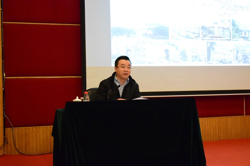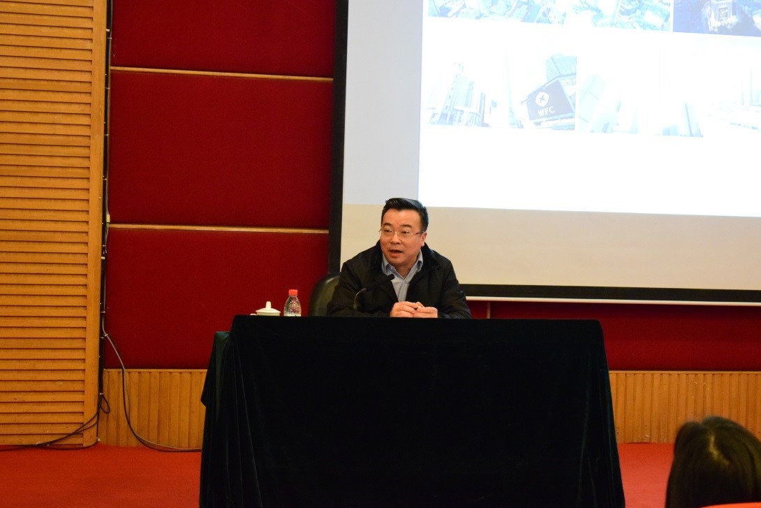 接着,商奎区长用亲切的言语,拉开了今天讲座的序幕,并从“渝中的底蕴与基础”、“ 发展的形势、要求与目标”和“启示与思考”三方面进行报告。