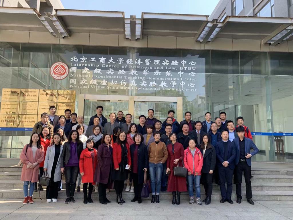 4月10日,调研小组还前往北京工商大学调研参观了北京工商大学经济管理实验中心(国家级实验教学示范中心、国家级虚拟仿真实验教学中心),与北京工商大学经济管理实验中心负责人就实验中心建设经验、实验中心建设规划等进行了交流。