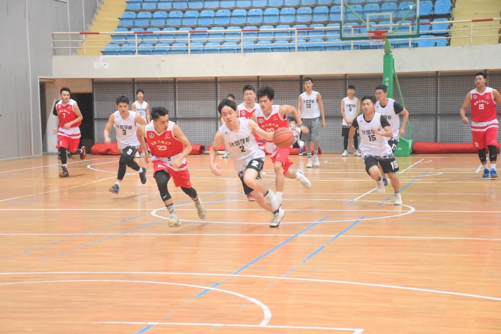 12点30分,随着哨声的吹响,比赛正式开始。在上半场比赛中,必赢国际437运动员出现了一些小失误,导致在第一节第二节比赛中没有建立很好的优势。但他们没有灰心丧气,积极调整状态,不断防守,抵挡对方的进攻,比分差距逐渐缩小。在第二节即将要结束时,观众们正在倒数着:“3,2—”这时,一道凌厉的弧线穿过篮筐,球进了!运动员们不放弃的精神相互传递和感染,在下半场中,他们越战越勇,连连进球,计信学院队在几次进攻失败后,开始有些心急,疏于防守,我们的队员抓住了这个机会,再次将比分差距拉大,在比赛中占据优势。