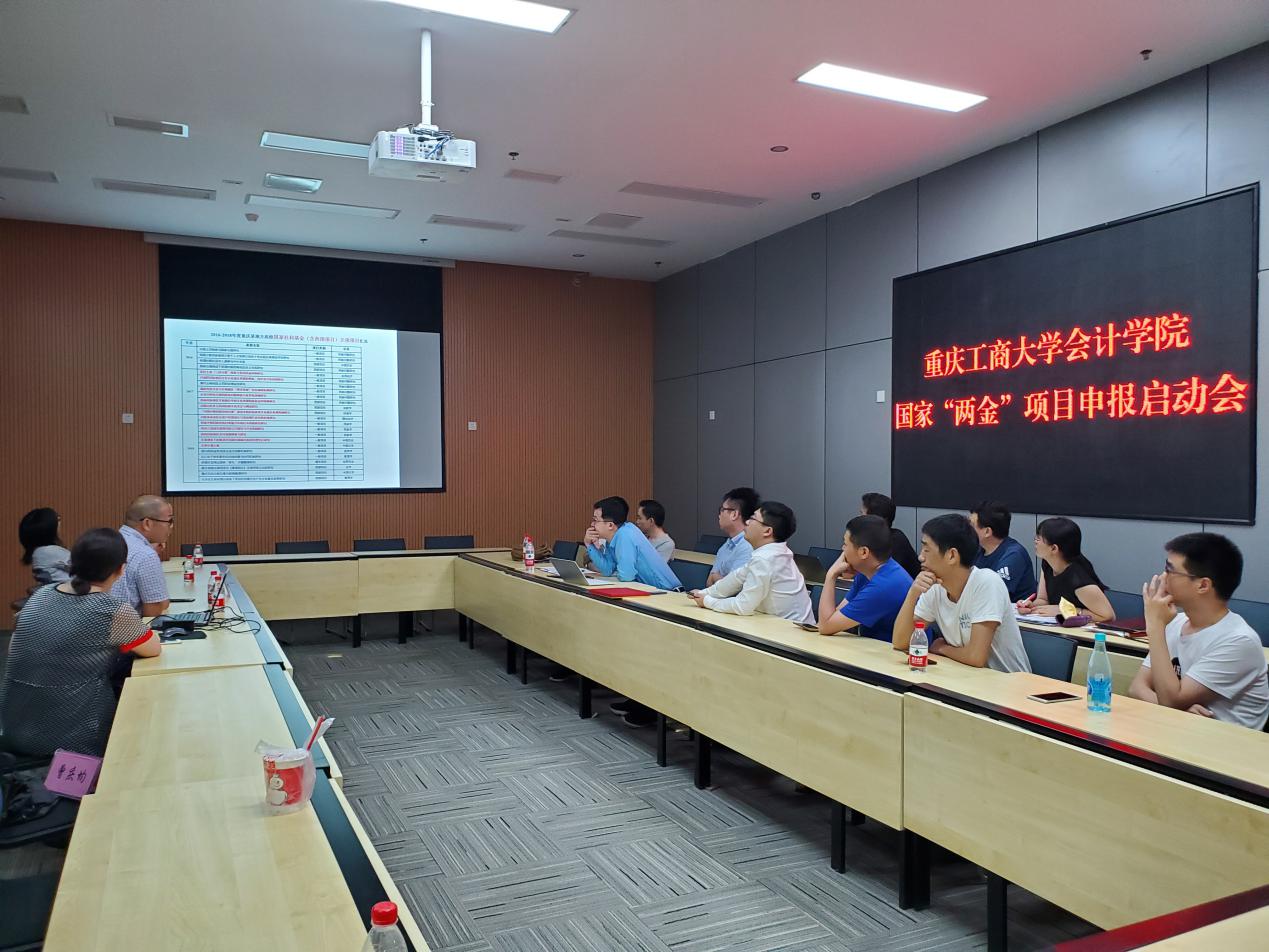 首先,由437bwin必赢国际科研处处长曾庆均教授致辞。曾处长强调了国家“两金”项目对高校教师的意义重大;提出了科研促进教学的路径,即把教师科研成果编进教材,变成教学案例带进课堂,转化成学生实验项目,展示在网络教学资源平台中,把研究成果与心得融入到学生科研能力提升中;他希望必赢国际437各位教师多参加“两金”项目论证,虚心请教专家,选好题目,用情用心,坚持申报;最后,曾处长表示学校科研处将对会计学学院申报“两金”项目提供全力支持,并预祝2020年取得丰硕成果。