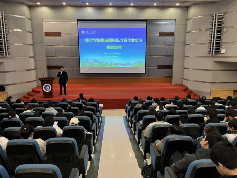 毕业实习动员大会由李长艳老师主持。首先,钟廷勇院长就毕业实习做了相关部署及动员讲话,分析了毕业实习的重要性。钟院长指出,一是同学们在外实习要持有恭敬心,且要有助人为乐之心;二是在实习中运用自己所学知识解决相关行业企业问题,从而实现自身价值;三是强调实习有助于提升解决问题的能力和提高抗压能力,做好迎接未来工作的挑战和机遇。
