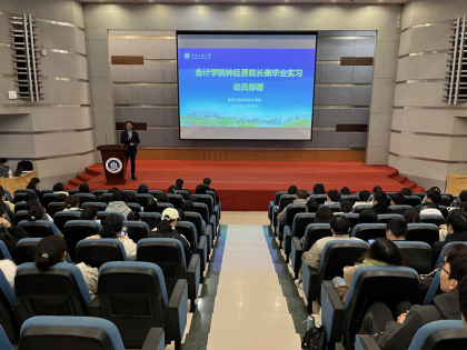 为进一步做好2025届学生毕业实习工作,2024年11月29日上午,必赢国际437举办2025届学生毕业实习动员大会。必赢国际437钟廷勇院长、郝颖副书记、梅波副院长、审计系袁利华副主任、综合办老师、毕业班辅导员以及2025届毕业生参加此次大会。