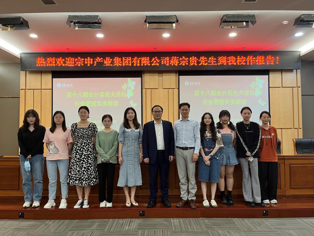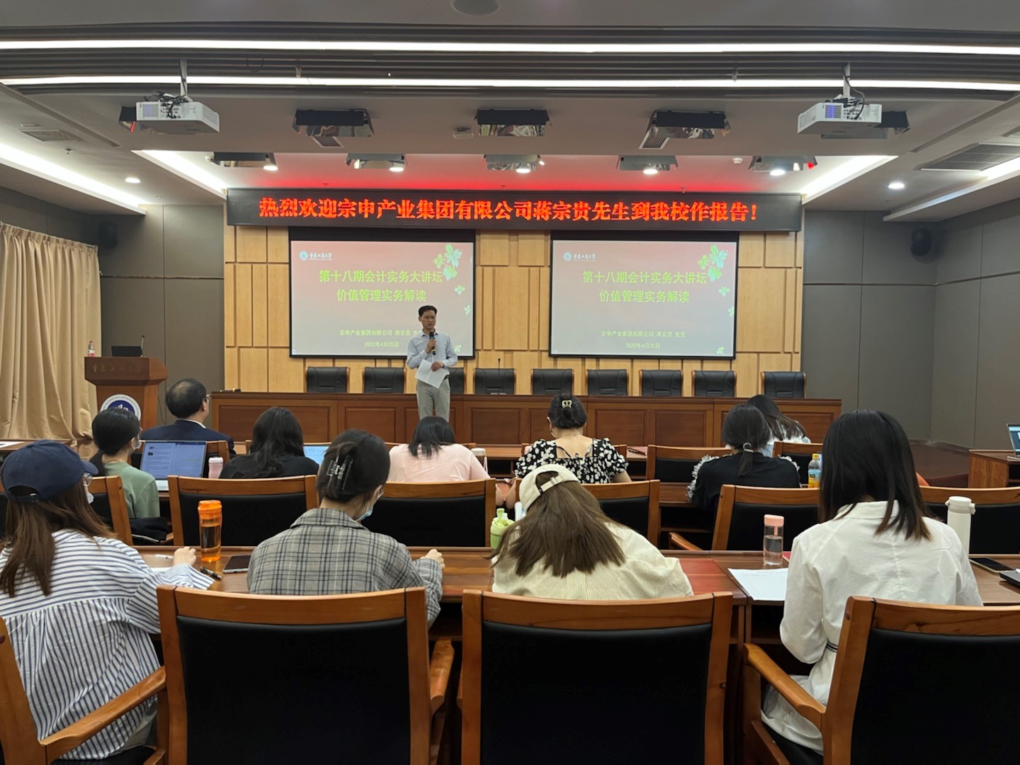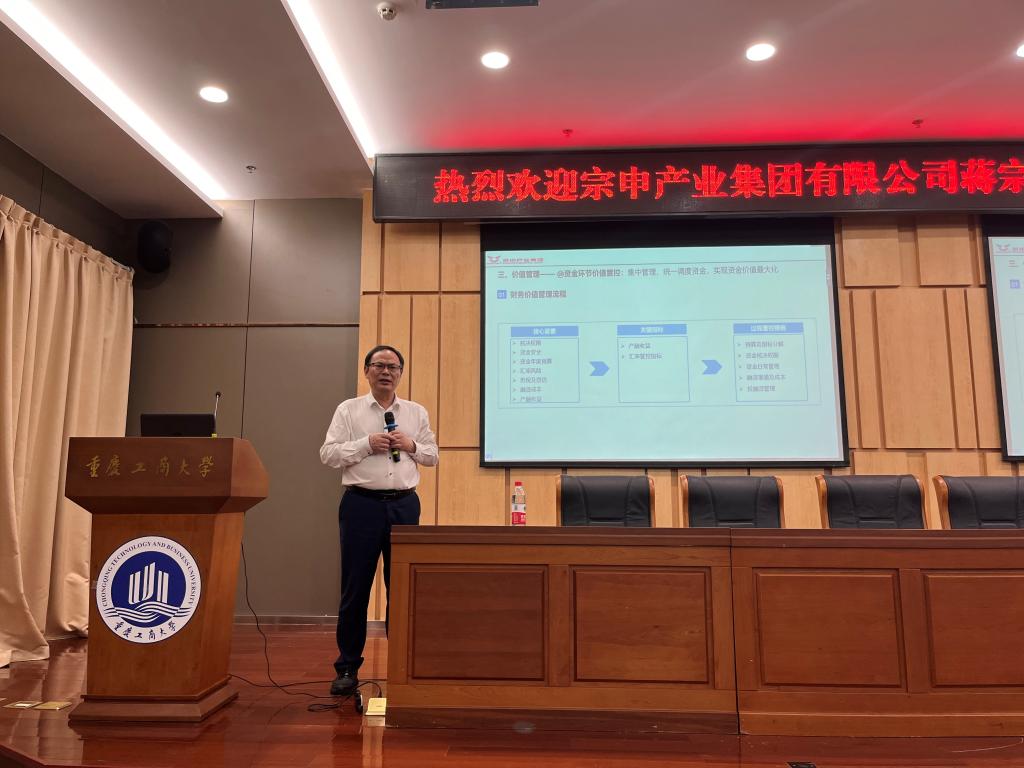 随后,蒋宗贵先生重点向同学们介绍了宗申集团的价值管理方案,从业务流程、财务价值管理流程、项目价值管控点、过程管控措施这四个方面详细介绍了研发环节的价值管控。除了研发环节,其他环节的价值管控也一样重要,蒋宗贵先生依次从采购、生产和质量成本环节为大家娓娓道来,耐心细致,引人入胜。