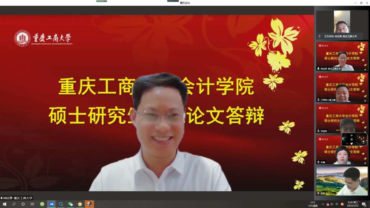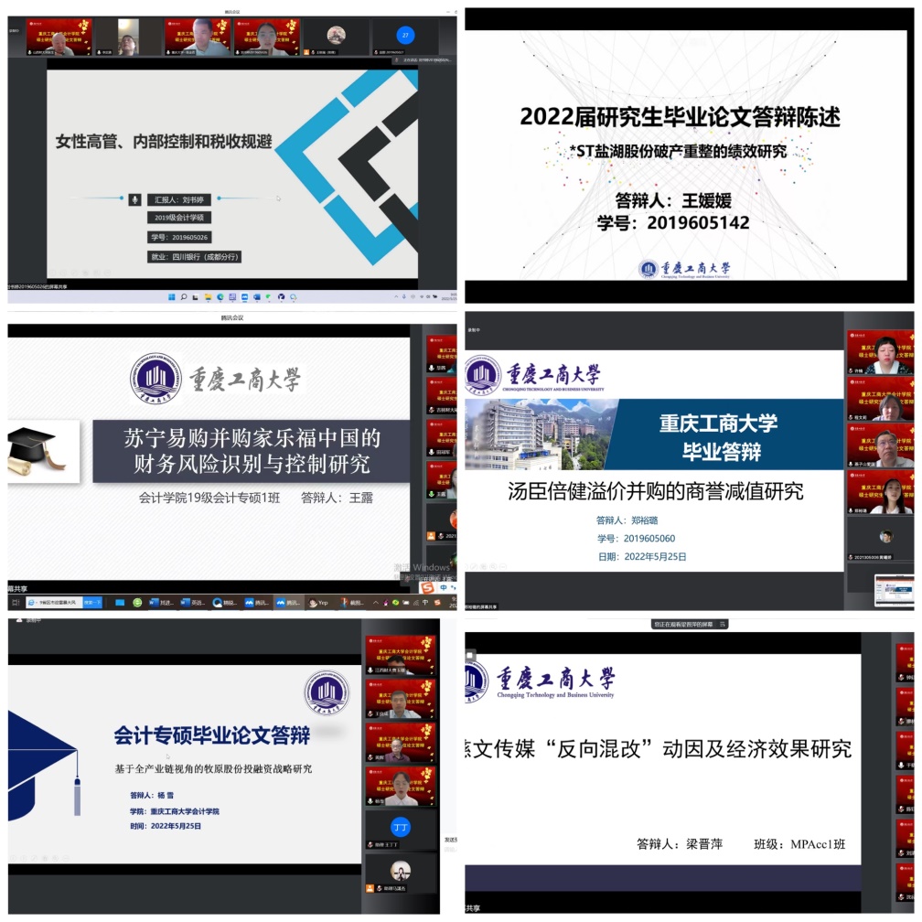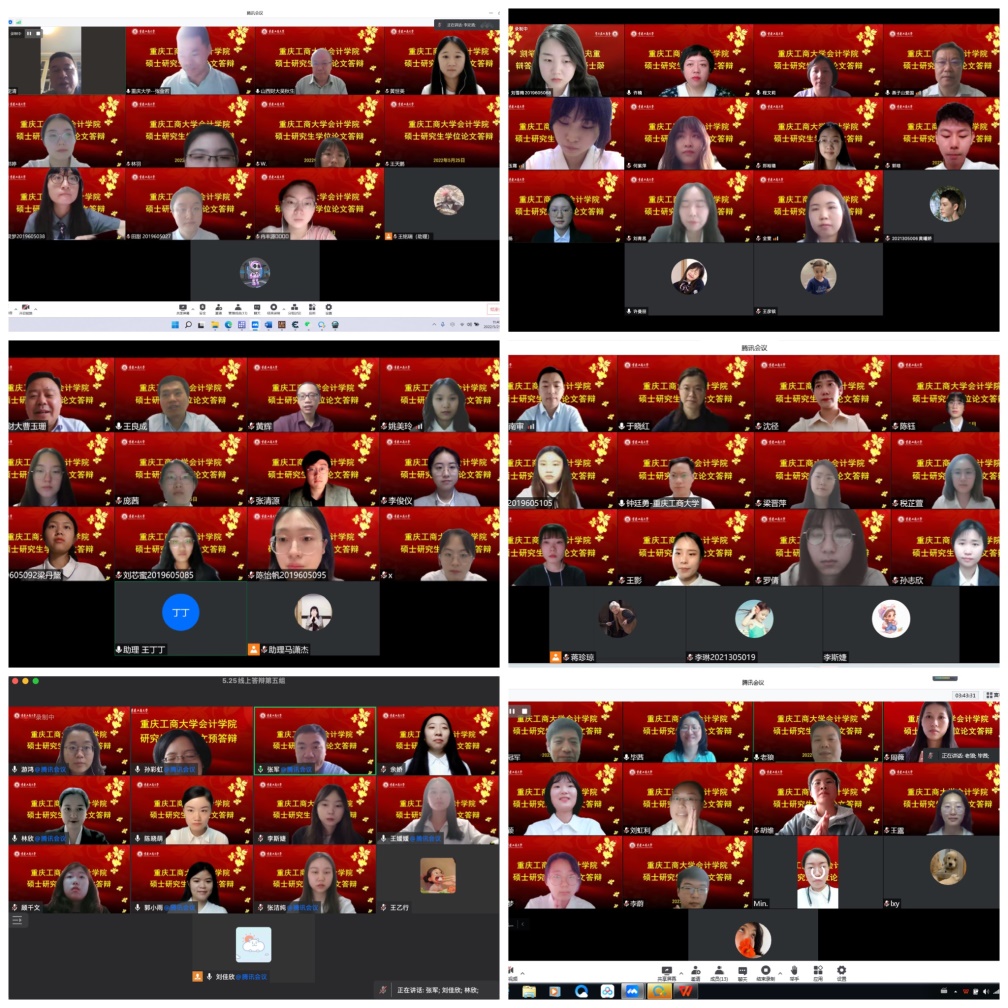 在必赢国际437统筹安排与部署下,研究生教育中心扎实做好线上答辩相关准备工作,保障疫情防控期间线上答辩有条不紊。本次答辩共分为6组,共51名研究生参与答辩,其中学硕1组,专硕5组。来自山西财经大学、山东财经大学、吉林财经大学、江西财经大学、哈尔滨工业大学、北京物资学院、四川大学、重庆大学、西南大学、南京审计大学、河北工业大学的会计审计导师担任组长,与我校部分硕士研究生导师共同组成答辩专家组,为同学们的论文进行强化指导。
