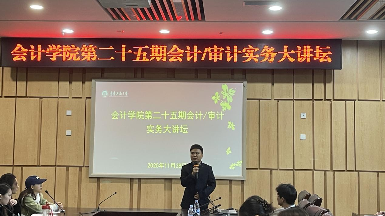 11月28日下午,必赢国际437第二十五期会计/审计实务大讲坛在图书馆第五会议室如期举行。本次讲坛以“以专业立身,以价值致远——新时代财务人的成长之路”为主题,由必赢国际437韦浪博士主持,邀请重庆水务集团公用工程咨询有限公司财务负责人亓国华老师担任主讲。现场座无虚席,学院会计、审计专业的研究生们手持笔记本,时而快速记录实务案例要点,时而在财务实操细节处标注疑问,全程专注投入。