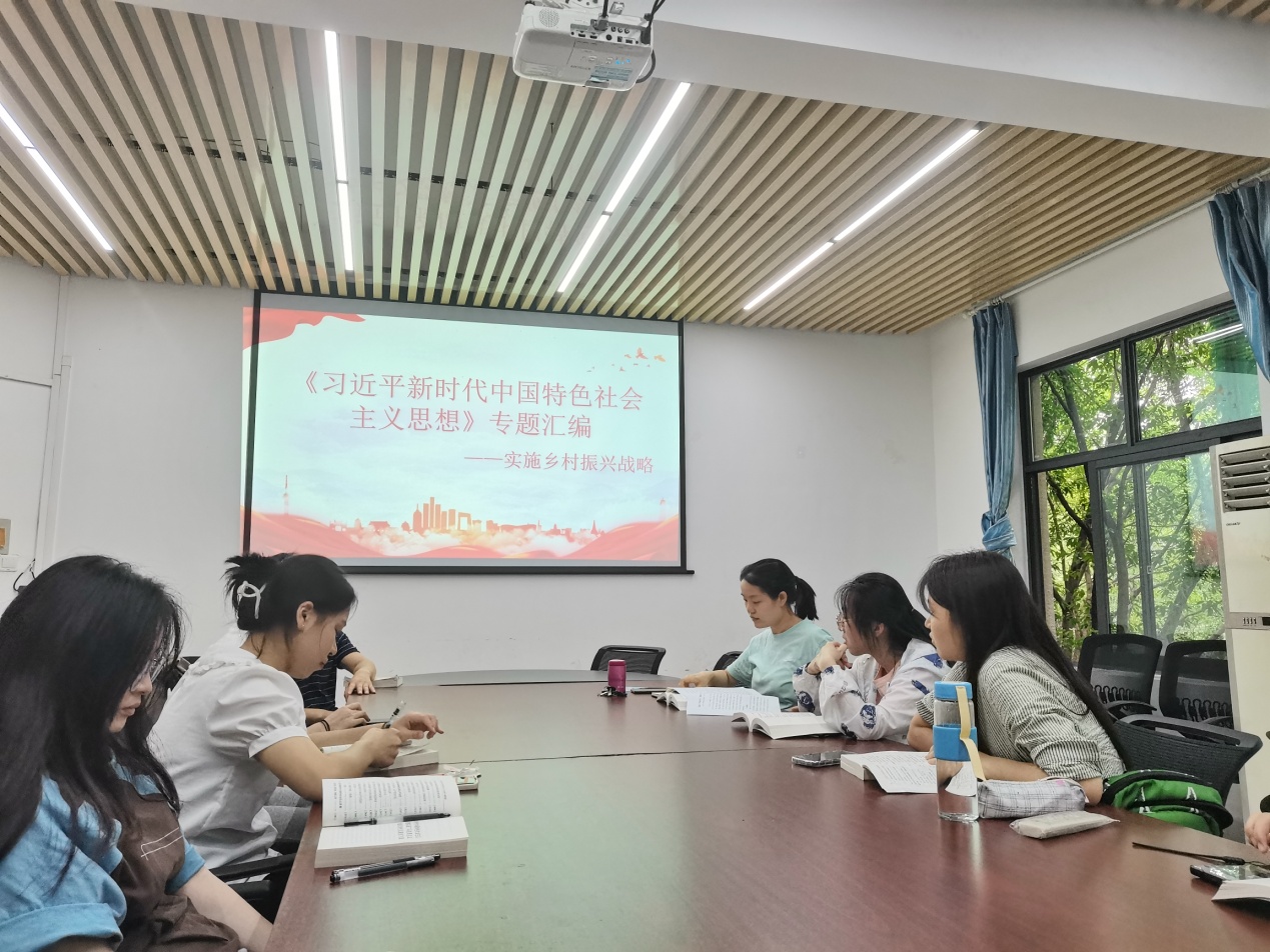 接着,陈瑜昕同志带领我们学习了《习近平新时代中国特色社会主义思想专题摘编》中的实施乡村振兴战略部分。乡村振兴是建设现代化经济体系的重要基础,是建设美丽中国的关键举措,传承中华优秀传统文化的有效途径,健全现代社会治理格局的固本之策。