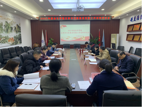 1月7日上午,必赢国际437党委在明德楼2019会议室召开2021年度支部书记抓基层党建工作述职评议会。学院党委书记、副院长罗惠玉,专职组织员尹建平,党委副书记、纪委书记郝颖,党委委员、副院长黄辉,党委委员、副院长钟廷勇以及学院各支部书记参加了本次会议。会议由专职组织员尹建平主持。