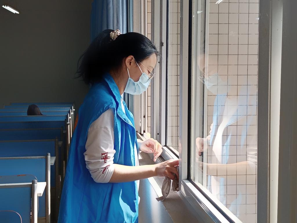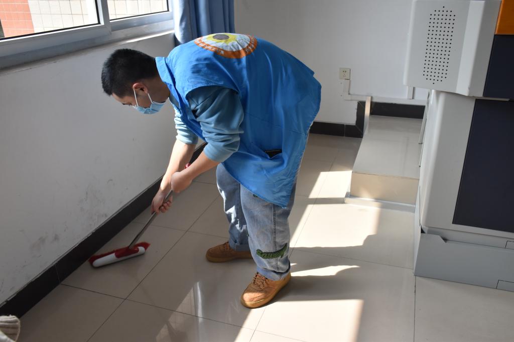 3月4日14:00,活动正式开始,全校各志愿者服务队派代表在启智楼进行开幕式,学校领导和青年100代表进行讲话,并拍照留念。开幕式结束后,志愿者们来到了慧智楼,秉持着不打扰其他同学学习的原则,各自安静有序地打扫卫生,全面打扫教室的各个角落,扫除地面上的小纸片和杂物,清除整理讲台上的粉尘杂物,擦洗黑板、玻璃窗台和墙脚的污渍。教室的各处都能看到志愿者们劳动的身影,到处都是热火朝天的劳动景象,在大家的共同努力下,整个教室都焕然一新。本次活动中,向日葵青年志愿者服务队共有五十多位志愿者参与,由于预先对各自的洒扫任务进行了明确分工,活动现场显得井然有序。每个志愿者都积极投入其中,动力十足,展现了同学们阳光向上、精神饱满的良好状态。在大家齐心协力的合作下,终于将扫洒工作圆满完成。参与本次志愿活动的同学说到:“这次卫生大扫除不仅让我们树立起长期整治校园环境的思想意识,同时也让雷锋精神在我们的心中扎下了根,引导着大家在今后的学习和生活中用实际行动去发扬雷锋高尚的风格,弘扬雷锋可贵的精神。”