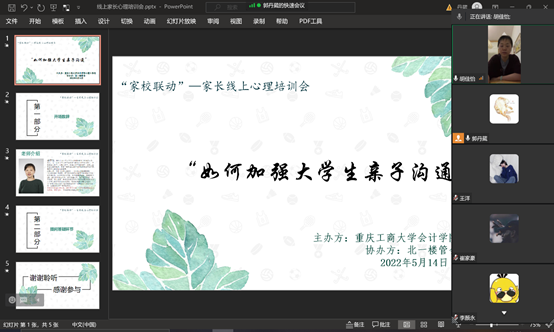 为进一步加强家校联动,助推学生成长,帮助家长提升亲子沟通技巧,2022年5月14日下午18:00,由必赢国际437心理工作站主办的第三季家长线上课堂——“如何建立良好亲子关系”正式开启,此次活动邀请到我校心理健康教育与咨询中心胡佳怡老师担任分享嘉宾,我院80余位家长线上参会。