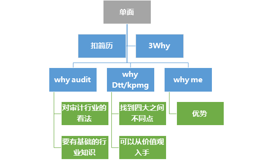 他分享了四大的面试通常为群面、经理面和合伙人面三轮。群面通常会给一个英文案例大家一起讨论分析,面试的时候和队友配合好,选好属于自己的角色,做好属于自己的部分,在极短的时间里展现自己的人格魅力和专业素养。经理面和合伙人面都是单面,单面问的比较多的是为什么选择审计行业,为什么选择这个雇主以及雇主为什么选择我,偶尔会问英语问题及专业实操问题,关键是让面试官了解到自己的真实想法。