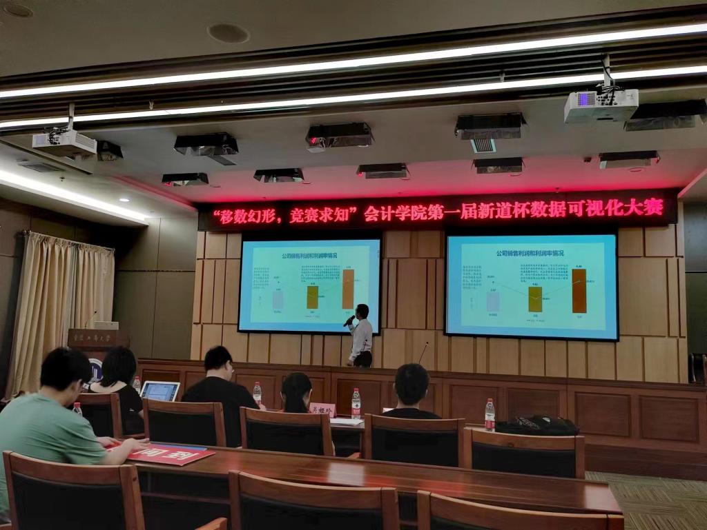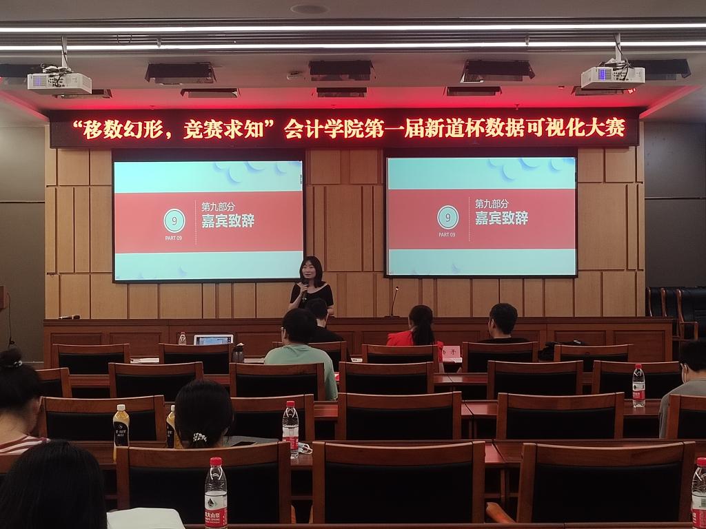 比赛接近尾声时,张野女士给予了决赛队伍高度赞扬,充分肯定了可视化比赛在灵活运用会计知识与可视化技巧方面的成果,并表示对下一届新道杯数据可视化比赛的期待。