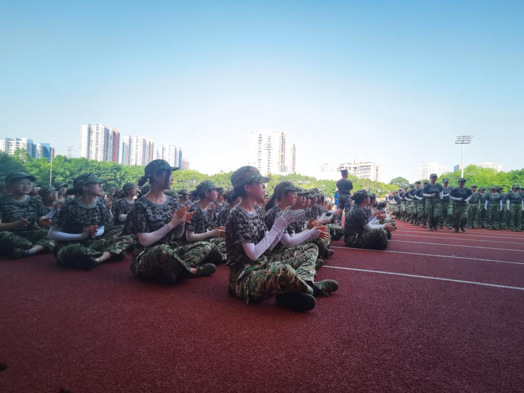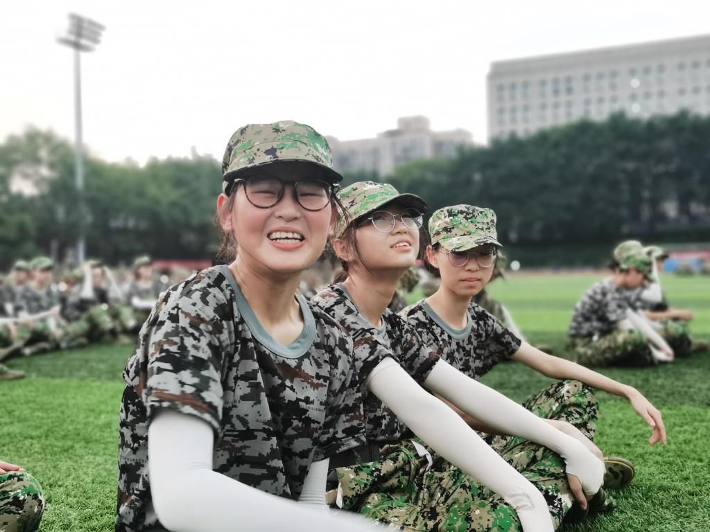在军训开始的这几天里,同学们即使头顶炎阳、迎着阵阵裹挟着热潮的风浪,还是能够在教官的一声令下保持严谨的军姿并且一动不动,秉持着军令如山的钢铁原则。虽然脚底板又累又疼,但大家都懂得站军姿是军训中最基础的一个动作,站好了军姿,我们才能更好的也更加有信心进行下一步的训练。训练场上、路道上、树荫底下到处活跃着一片片迷彩服的身影,大家都在积极紧张的练习着蹲下、敬礼、齐步行进、正步行进等一个个军训教学内容,一轮紧张尽心尽力的练习后教官的表扬是我们的有所得与发自内心真挚的快乐。嘹亮的口号、整齐的步伐是军训场上一道道靓丽风景。夜晚训练场上同学们的精彩歌唱、对歌、拉歌是我们的快乐源泉,更添同学们的活力。
