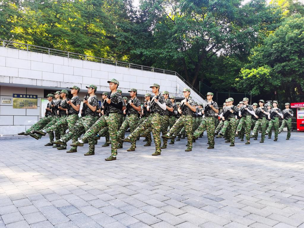 阳光从绿叶间倾洒而下,穿着迷彩服的少年少女们沿着道路昂首前行,活力四射、浩浩荡荡。走在其中的我忍不住想,也许这就是青春的模样。