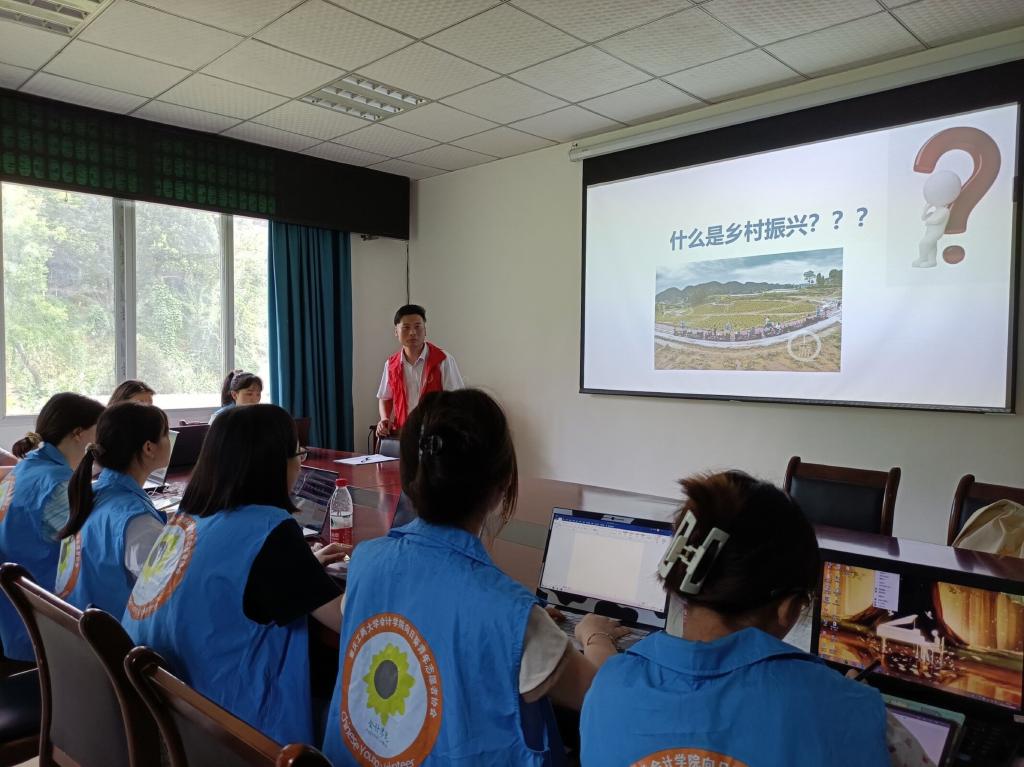 本次会议围绕解读国家乡村振兴目标、分享黄金林村现状、分析现存问题及解决路径开展。“产业兴旺、生态宜居、乡风文明、治理有效、生活富裕”是实施乡村振兴战略的总要求,也是团队下乡调研的重点。会上,叶老师提到,村中现有困难户48户,其中,过半数家庭是因病导致经济困难。目前村民的基本医疗支出可以依靠医保报销,除重大疾病产生的大额医疗支出由村民承担部分费用外,其余费用基本可以报销。另外,黄金林村要实现乡村振兴,青年人才的引领作用不可或缺。但目前村中人才流失严重,绝大多数年轻人选择外出务工,家中留守的多为60岁以上的老年人,既提高了招揽人才的成本,又增大了村中医疗的压力。他强调,解决此类问题的关键在于围绕乡村历史,打造特色产业,充分挖掘乡村对人才的吸引力,需要通过“乡愁”吸引人才,广聚天下英才而用之,做到人尽其才,才尽其用,形成推动乡村振兴的强大合力。