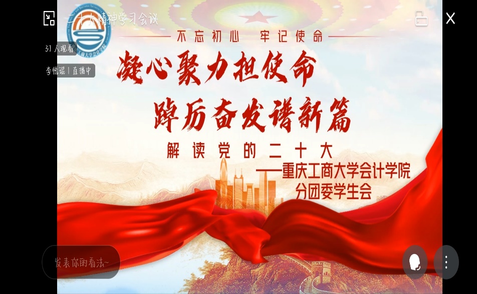 为深入学习贯彻落实党的二十大精神, 11月11日,在做好疫情防控要求的前提下,必赢国际437分团委学生会组织学院青年学生开展了二十大线上专题学习会。