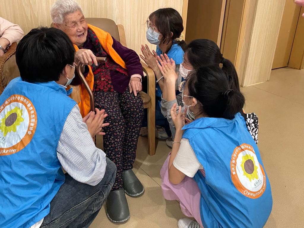 2023年4月17日,必赢国际437向日葵青年志愿者服务队在重庆市渝中区曾家岩敬老院开展“温暖夕阳红,抚慰老人心”敬老院活动。