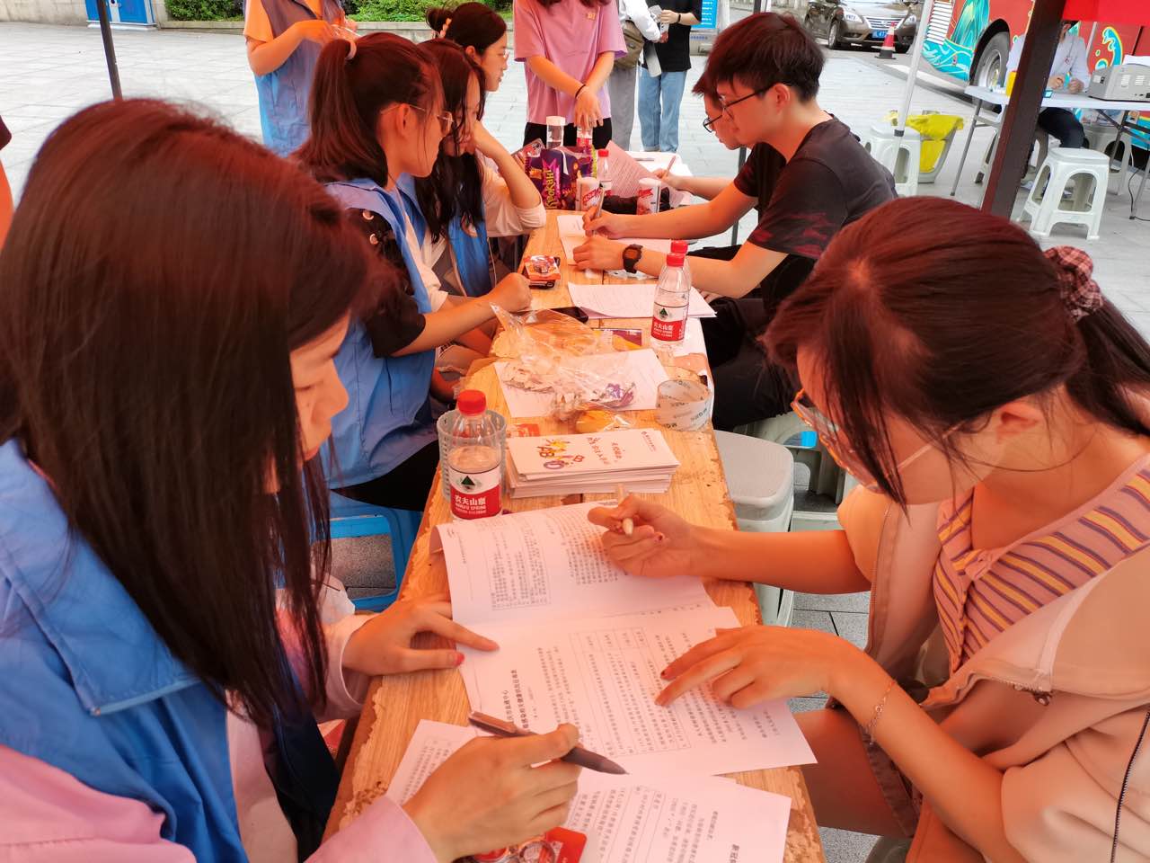 许多同学都是首次参与献血,面对粗长的针管,他们都克服了内心的害怕与不安,勇敢地完成了献血。特别是活动中献血的几位女同学,在填写献血信息表时,毫不犹豫地勾选了400mL的选项,面对志愿者的反复询问,她们都坚定不移。此次参与献血的人员不单只有学生,还有教职工,他们献出自己的鲜血,将爱与希望延续,通过血液滋润另一个生命,绽放出新生的活力!