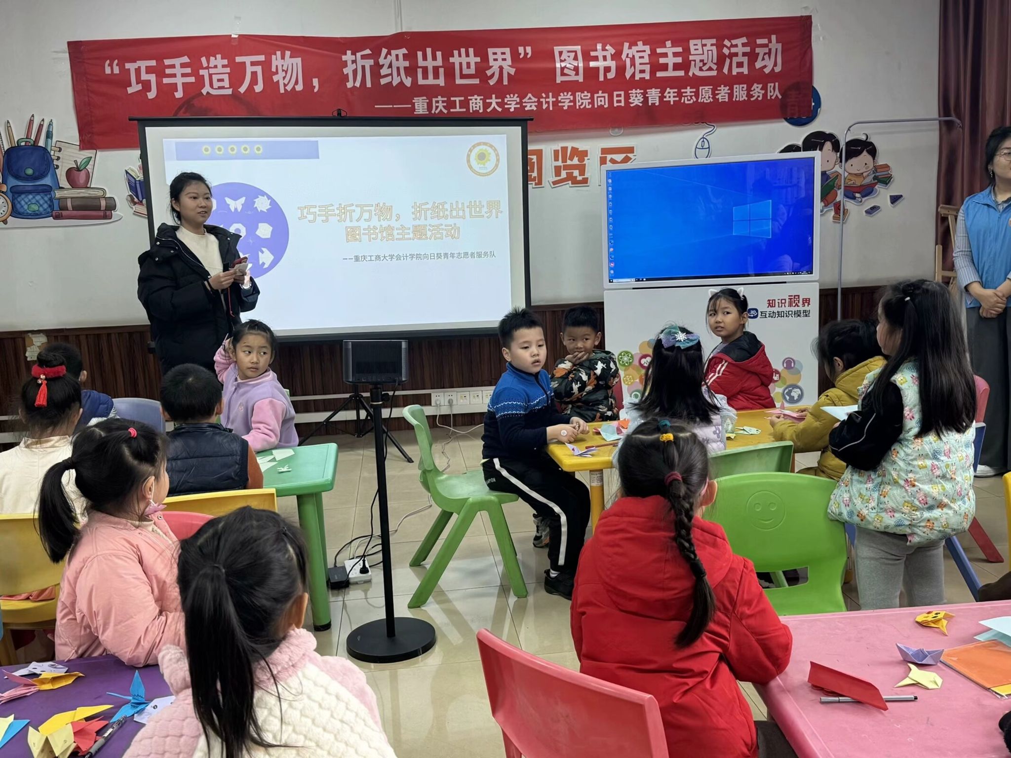2023年12月10日,437bwin必赢国际向日葵青年志愿者服务队在重庆市少儿图书馆举办了“巧手造万物,折纸出世界”的图书馆主题活动。该活动通过折纸,用寓教于乐的方式来增强小朋友们保护动物的意识,使小朋友们了解更多的小动物,引导小朋友尊重和喜爱动物。