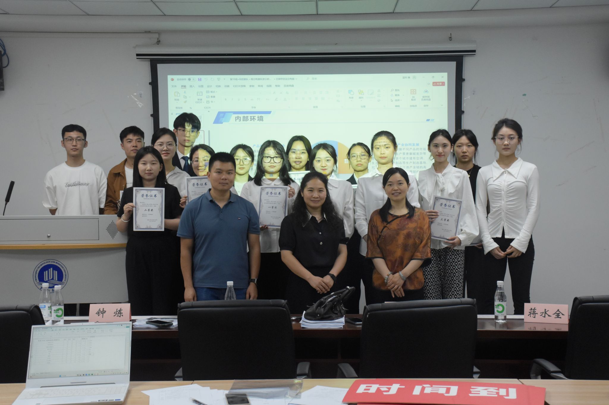 在小组汇报环节中,由十个参赛小组采用 PPT 展示初赛案例作品的重点和思想框架,并完成答辩。各小组分别从能力分析、技术分析 、企业估值、财务分析、投资建议、等方面对伊利、美的、格力、双汇发展公司和华润三九公司进行企业投资价值分析,并运用了PEST分析、SWOT分析、杜邦分析法,FCFF预测估值、EVA预测估值等体现该企业具有较强的偿债能力和营运能力,资本效力高,具有长期竞争力的优势。其中,有小组创意性地以原创诗词永遇乐·伊利开篇,引出研究主体——伊利,然后从公司介绍、战略环境、四大能力、投资建议四个方面对伊利进行投资价值析。有的小组从家电行业概述、家电行业发展现状、美的集团概况、财务分析、价值评估、风险与建议等多个方面对美的进行投资价值分析,并结合格力和海尔进行对比分析突出美的具有比较好的成长潜力。各小组都在投资建议中指出投资者需要谨慎投资,关注国际国内形势变化以及市场需求等因素。在每组分享结束后,评委老师及时而精准地肯定其优点,指出不足并进行提问。最后,由主持人公布获奖名单,评委老师和参赛选手合影留念。