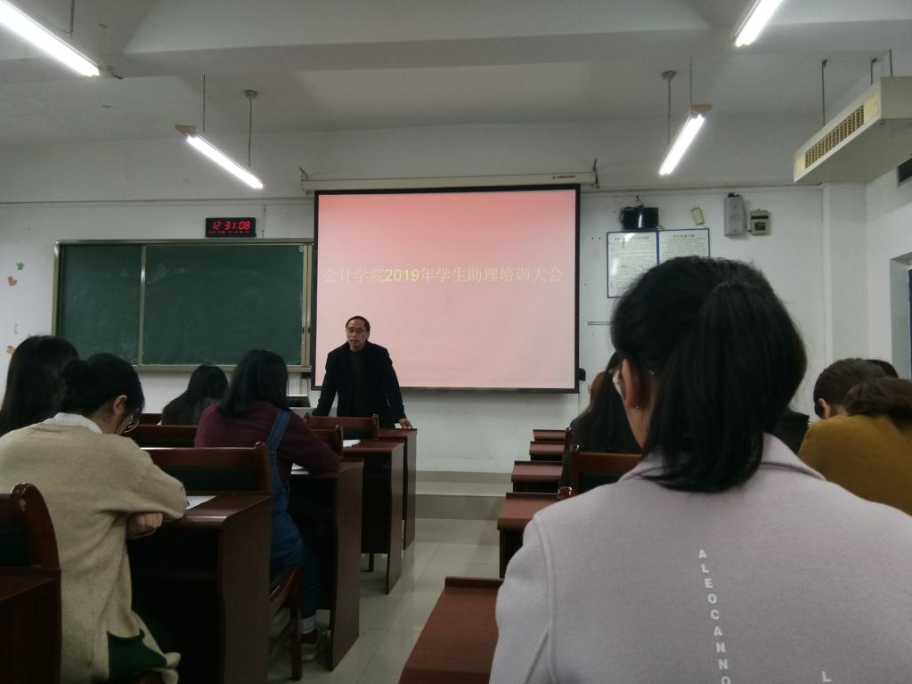 为规范管理学院学生勤工助学工作,促进勤工助学活动健康、有序开展,保障学生的合法权益,培养学生自立自强精神,真正发挥资助育人重要作用,结合学院实际情况,必赢国际437于3月22日中午12时,在博智楼604教室召开2019年学生助理培训大会。必赢国际437党委尹建平副书记、学院资助工作负责人付海南老师以及全体学生助理参加了此次大会。