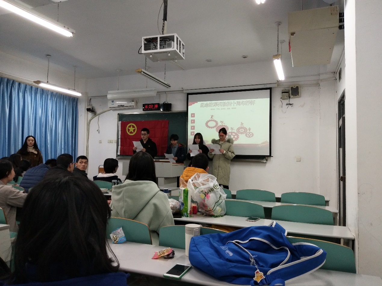 本次团日活动主要分为6个环节。首先,团支书宣布活动开始,介绍活动目的,并带头合唱国歌。国歌唱完后,班上几位同学为大家带来了诗朗诵表演,慷慨激昂的演讲使全班氛围瞬间被点燃。紧接着,团支书为我们放了两段视频,一段是关于改革开放四十周年的视频,另一段是班长带着几位班委和同学采访的我们自己班上同学的视频,内容是同学们对改革开放四十周年的看法和认识。观看视频后,同学们开始分享一些改革开放四十年来身边涌现的先进模范人物和事件。分享完毕后,活动进入了轻松的游戏环节。最后,活动以知识抢答结束。